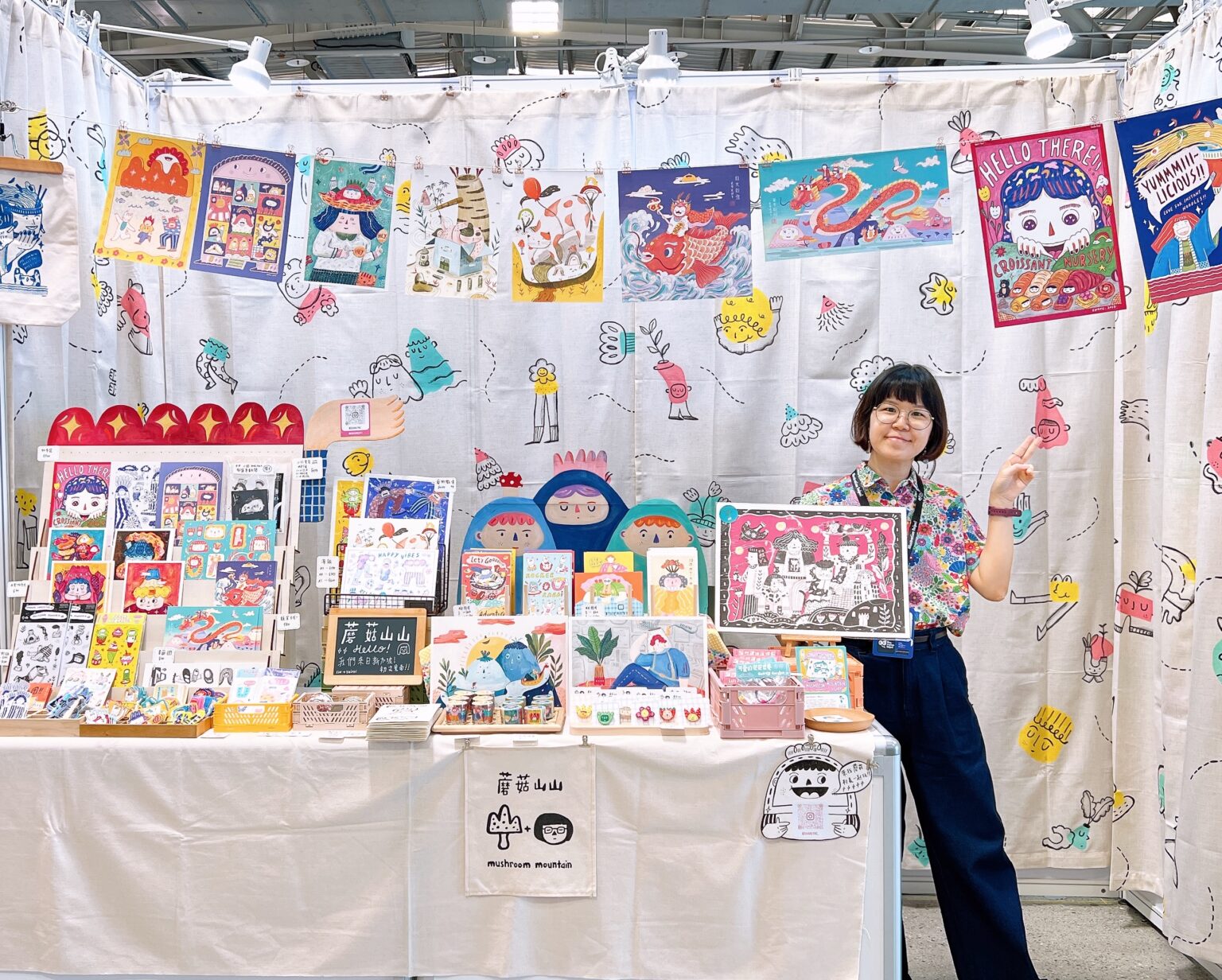 Her journey, marked by both self-initiated exploration and formal training, laid the foundation for her brand—a space where personal style and passion could flourish. Inspired by Taiwanese illustrators who turned their artwork into merchandise, Shanlyn envisioned a similar path. Wanting to make her art more accessible beyond private commissions, she created Mushroom Mountain as a whimsical world for everyone to enjoy. The brand name itself holds personal meaning—‘Shan’ refers to her name and also resembles the word for “mountain” in Chinese, while “mushroom” nods to her playful aesthetic and her once-iconic mushroom haircut. It all came together to represent a dreamy, quirky universe through her distinct artistic lens.